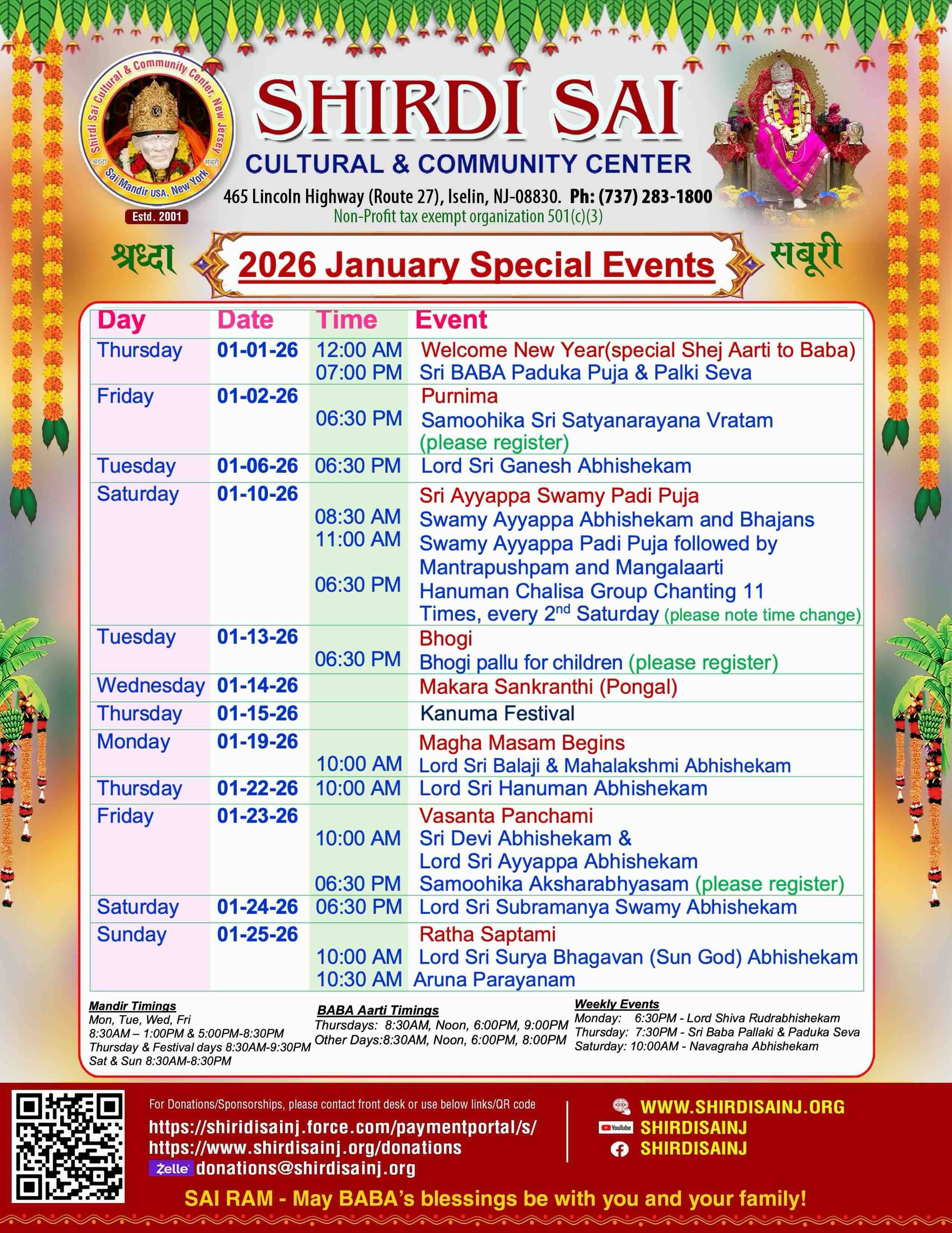 Welcome to Shirdi Sai Cultural and Community Center, Iselin