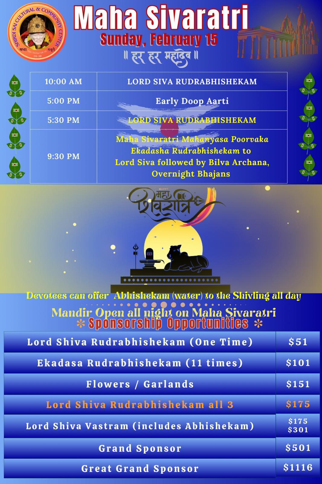 Through out the year, Sai Community Center organizes and participates in several social activities like Annadanam (serving food), providing supplies for neighborhood shelter networks, holding medical camps and blood drive(( through Red Cross) and other community welfare activities. Center also conducts Bal Vikas classes for kids, free yoga classes for adults. Temple promotes Baba's primary principle of inter-religious harmony and universal brotherhood.